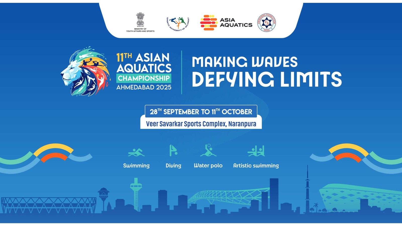 - Organizers: Asia Aquatics, Swimming Federation of India, Sports Authority of Gujarat
